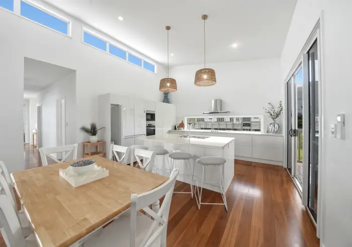 Solas Sands is a contemporary coastal haven designed for effortless relaxation. Set just moments from the beach, the open-plan living space flows seamlessly to the outdoor entertaining area, where a sparkling private pool awaits for long afternoons in the sun. Inside, natural light floods every room, with modern finishes, plush furnishings, and all the amenities needed for a luxurious stay.