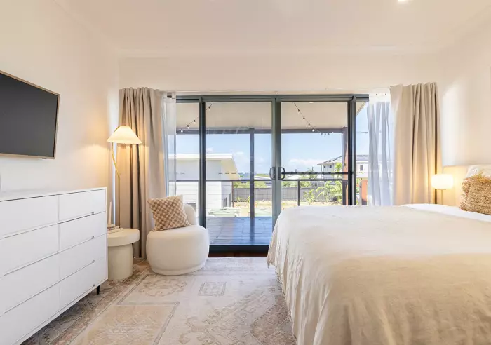 Master Bedroom: King bed with TV & walk-in wardrobe